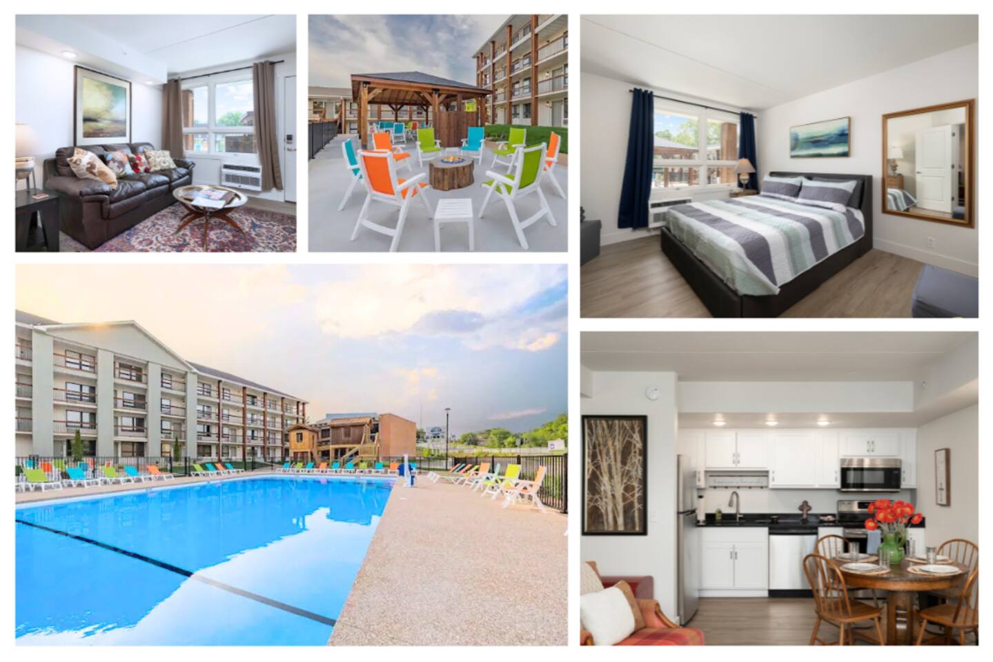 Welcome to our charming and spacious one-bedroom, 1 bathroom Roark Creek condo, your perfect getaway in Branson! This delightful retreat features a luxurious king-size bed and attached bathroom and a pull out sofa bed (perfect for the little ones). Situated on the first floor of the all new Roark condos located on the roundabout in Branson you'll enjoy the convenience of easy access to the refreshing outdoor pool. Relax under the gazebo or watch the kids have fun in the dedicated climbing structure play area. You and your family can enjoy full access to the complete gym and indoor pool throughout your stay. The brand-new outdoor pool, gazebo, and children's play area are ready for you to enjoy. Staying in our condo near downtown Branson and The Landing offers an unbeatable combination of comfort, convenience, and excitement. Located in the heart of Branson, you'll be very close to an array of attractions, dining options, and entertainment venues. Branson Landing is a vibrant waterfront district featuring a delightful mix of shops, restaurants, and live entertainment. Stroll along the scenic boardwalk, catch a mesmerizing water and fire show at the fountain, or indulge in some retail therapy at the unique boutiques and major retailers. For family fun, visit the nearby Branson Scenic Railway, where you can take a picturesque train ride through the beautiful Ozark Mountains. Adventure seekers will love the proximity to thrilling attractions like the Branson Ferris Wheel, zipline tours, and the famous Silver Dollar City theme park. In the evening, enjoy a variety of live shows and performances, ranging from country music and Broadway-style productions to comedy acts and magic shows. With so many options just a short walk or drive away, you'll never run out of things to do. Staying in a condo near Branson Landing means you'll have all the excitement of Branson at your fingertips, while also enjoying a comfortable and convenient home base to relax in after a day of adventure. Book your stay now and immerse yourself in the best that Branson has to offer!