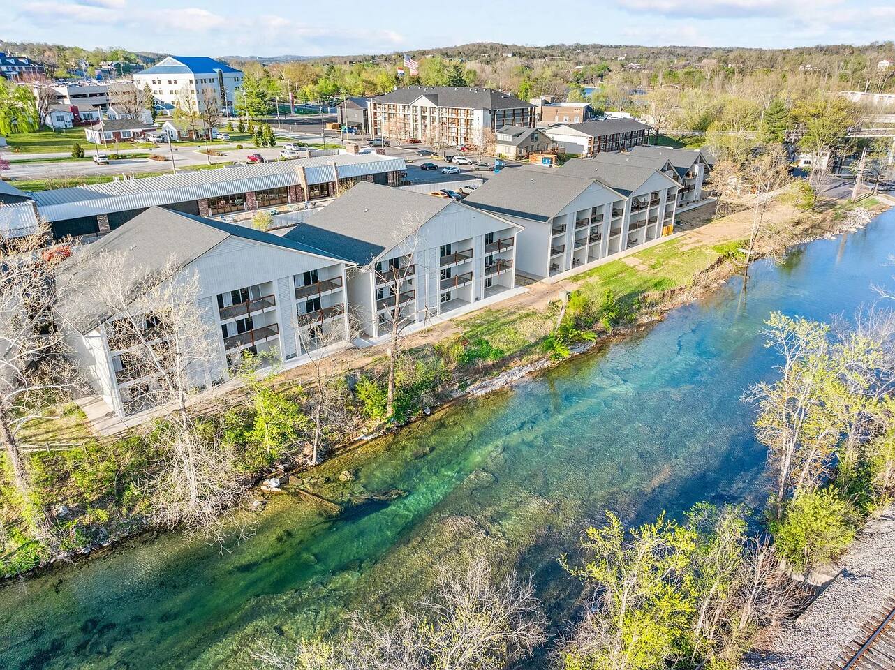Outdoor Pool open through 10/1 Welcome to your perfect Branson getaway! This newly remodeled 2-bedroom, 2-bath luxury condo offers a serene escape while keeping you close to everything Branson, MO, has to offer. Nestled along Roark Creek, this beautiful retreat features a spacious deck with peaceful water views, all-new furnishings, and thoughtful amenities for a comfortable and relaxing stay. ✨ Why You'll Love This Condo ✔ Prime Location – Minutes from Branson’s top attractions, theaters, shopping, and outdoor adventures ✔ Newly Remodeled – Stylish, modern décor with high-end finishes and all-new furniture ✔ 1 King and 1 Queen Beds – Ultimate comfort with plush bedding and premium linens ✔ Spacious Waterfront Deck – Enjoy morning coffee or evening wine with beautiful creek views ✔ Full Kitchen – Well-appointed for cooking with stainless steel appliances, cookware, and essentials ✔ Resort-Style Amenities – Outdoor pool, year-round indoor heated pool, fitness center, and fire pit ✔ Family-Friendly – On-site kids' jungle gym and plenty of space to relax and play ✔ Free WiFi & Smart TVs – Stay connected and entertained with high-speed internet and streaming apps Step into a bright and airy open-concept living space designed for comfort and relaxation. Floor-to-ceiling windows flood the condo with natural light, and the private deck overlooking the water provides a perfect place to unwind. Living Area: Cozy seating, large Smart TV, and stylish modern décor and family board games Kitchen: Fully stocked with all the essentials for home-cooked meals Dining Area: Seats four comfortably, with additional bar seating Primary Bedroom: King bed, ensuite bathroom, and direct deck access Second Bedroom: Queen bed and easy access to the second bathroom Bathrooms: Fresh, modern updates with plush towels and quality toiletries 🌟 Location, Location, Location! This condo is in the heart of Branson, MO, just minutes from the best attractions: 🎭 The Strip & Branson Shows – 5 min 🎢 Silver Dollar City – 15 min 🛍 Branson Landing & Shopping – 5 min 🚤 Table Rock Lake & State Park Marina – 10 min ⛳ Top Golf Courses & Mini Golf – 10 min 🌿 Hiking, Fishing & Outdoor Fun – Steps away 🏊 Resort Amenities During your stay, enjoy access to: ✔ Outdoor Pool (Seasonal) ✔ Indoor Heated Pool (Year-Round) ✔ Fitness Center ✔ Shared Fire Pit (Seasonal) ✔ Children’s Play Area