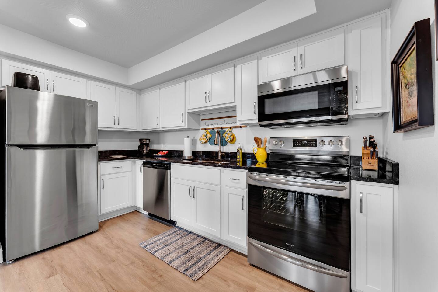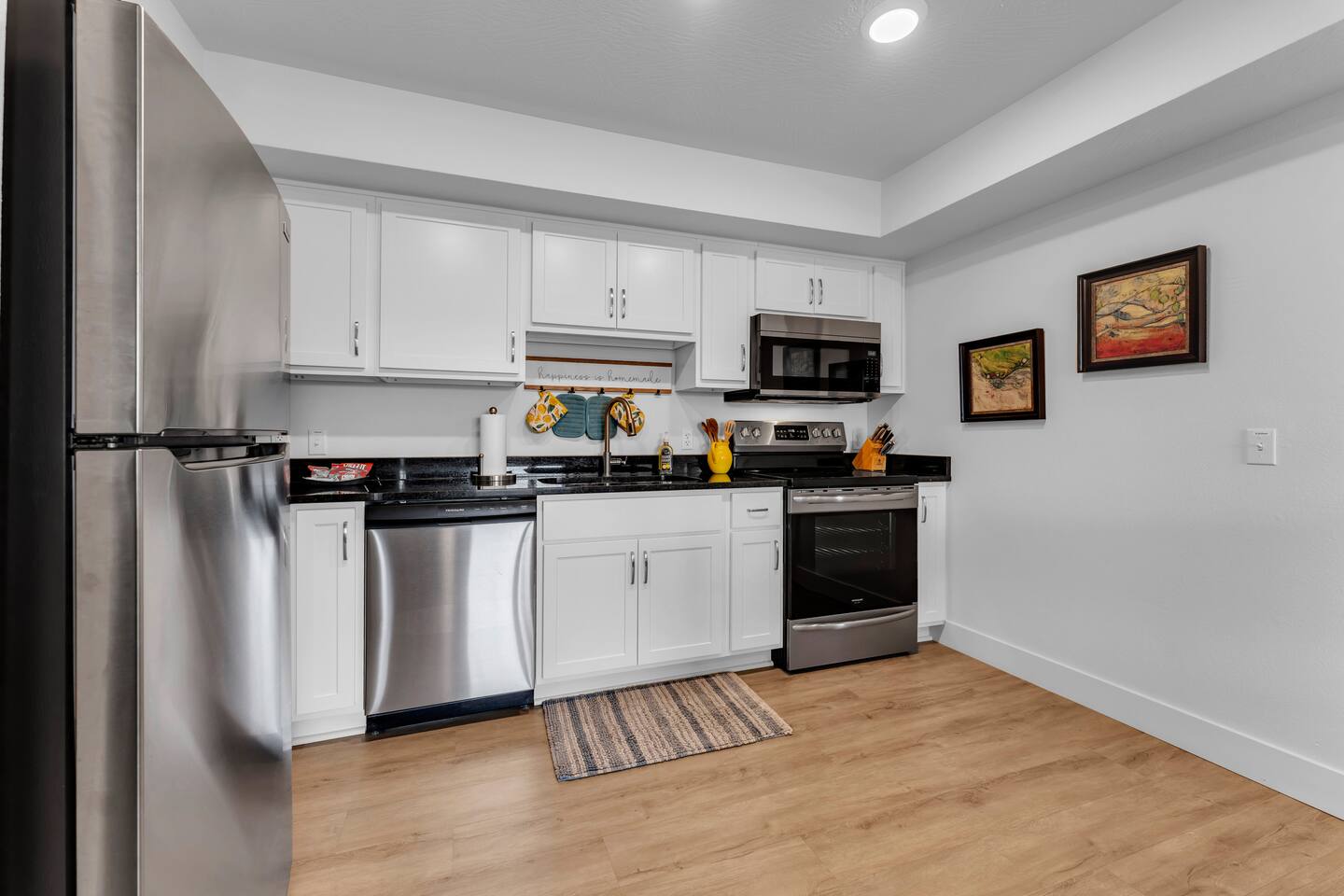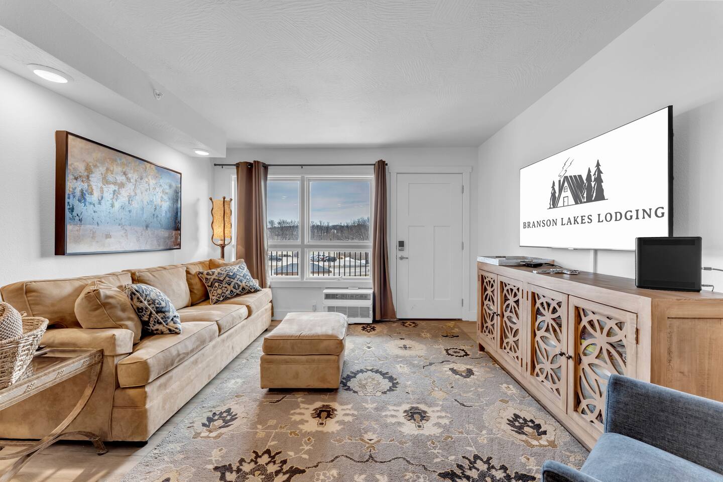 Outdoor Pool open through 10/1 Welcome to our charming and spacious two-bedroom, 2 bathroom Roark condo, your perfect getaway in Branson! This delightful retreat features a luxurious king-size bed in one room with a wonderful queen sized bed in the other. Both bedrooms feature attached bathrooms with a convenient shower and tub combo in one and walk in shower in the primary. Situated on the third floor of the all new Roark condos located on the roundabout in Branson you'll enjoy the convenience of easy access to the refreshing outdoor pool. Relax under the gazebo or watch the kids have fun in the dedicated climbing structure play area. This condo requires two flights of stairs. While an elevator is available on site, its operation cannot be guaranteed during your stay. You and your family can enjoy full access to the complete gym and indoor pool throughout your stay. The brand-new outdoor pool, gazebo, and children's play area are ready for you to enjoy. Staying in our condo near downtown Branson and The Landing offers an unbeatable combination of comfort, convenience, and excitement. Located in the heart of Branson, you'll be very close to an array of attractions, dining options, and entertainment venues. Branson Landing is a vibrant waterfront district featuring a delightful mix of shops, restaurants, and live entertainment. Stroll along the scenic boardwalk, catch a mesmerizing water and fire show at the fountain, or indulge in some retail therapy at the unique boutiques and major retailers. For family fun, visit the nearby Branson Scenic Railway, where you can take a picturesque train ride through the beautiful Ozark Mountains. Adventure seekers will love the proximity to thrilling attractions like the Branson Ferris Wheel, zipline tours, and the famous Silver Dollar City theme park. In the evening, enjoy a variety of live shows and performances, ranging from country music and Broadway-style productions to comedy acts and magic shows. With so many options just a short walk or drive away, you'll never run out of things to do. Staying in a condo near Branson Landing means you'll have all the excitement of Branson at your fingertips, while also enjoying a comfortable and convenient home base to relax in after a day of adventure. Book your stay now and immerse yourself in the best that Branson has to offer!