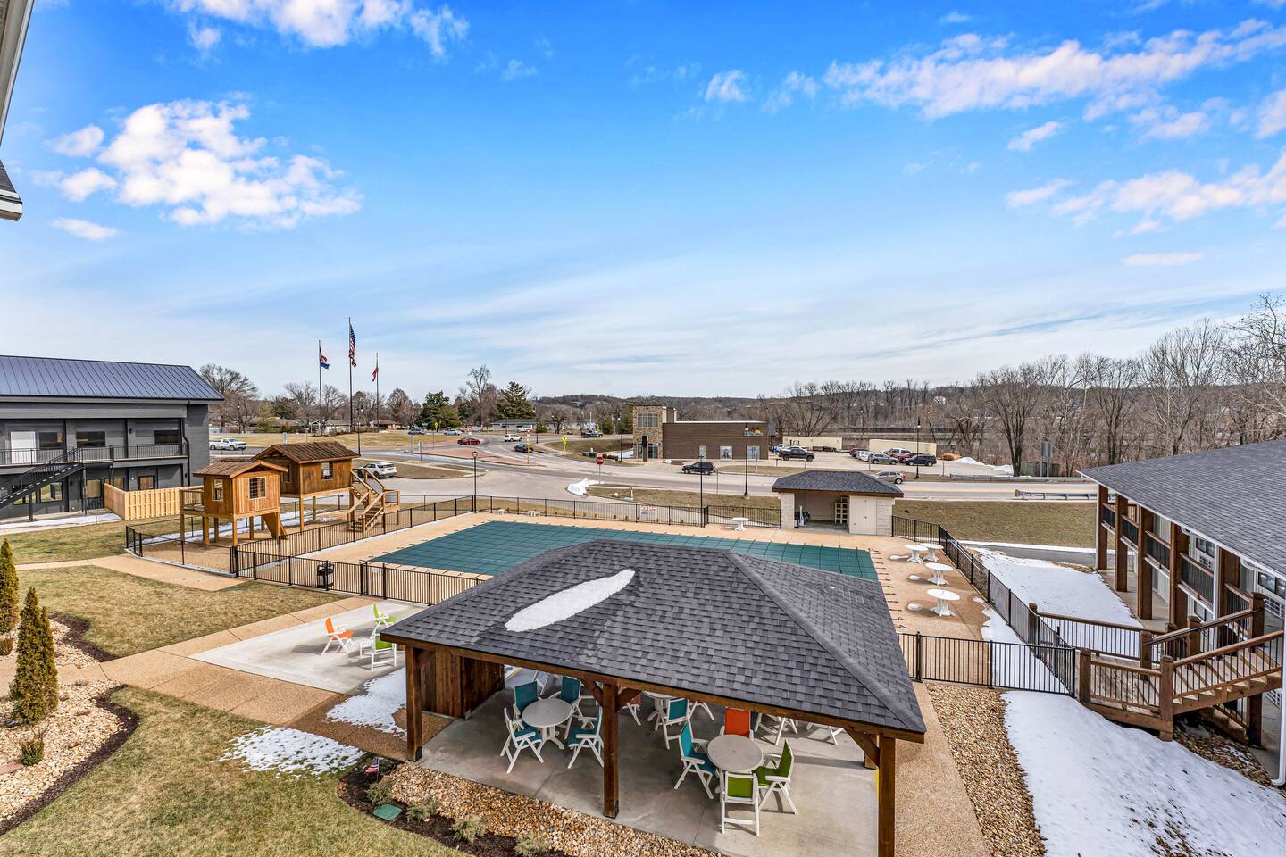 Experience the charm of Branson at the new Roark Creek, where special memories await. This spacious 2-bed, 2-bath poolside retreat offers all the comforts of home, including a fully equipped kitchen perfect for your culinary adventures. On-site amenities and access to the fitness center and indoor and outdoor pools. Enjoy the brand-new outdoor fire pit gazebo and kids climbing structure! LOCATION! You can enjoy a short walk to downtown and ride the free trolley to many attractions.